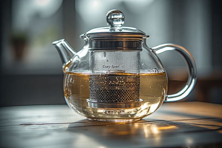 Γυάλινη τσαγιέρα με μεταλλικό φίλτρο για χύμα τσάι.